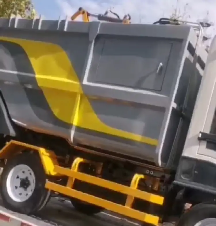 發(fā)往某環(huán)衛(wèi)公司的電動垃圾清運車裝車完畢準備出發(fā)